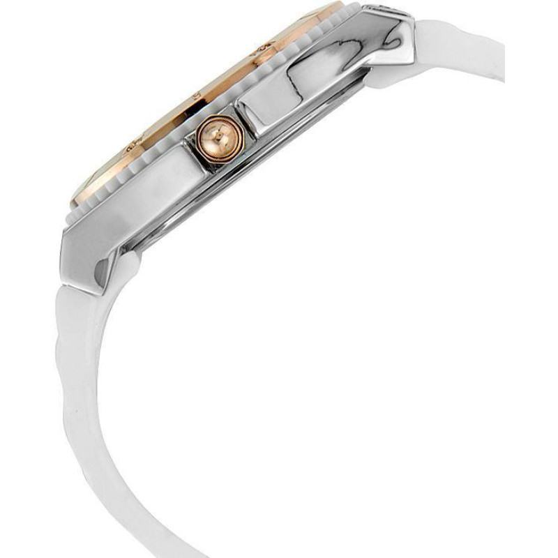 Голубой силиконовый ремешок. Корпус покрыт золотым PVD-покрытием. Циферблат украшен 4 фианитами. Цве..