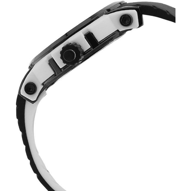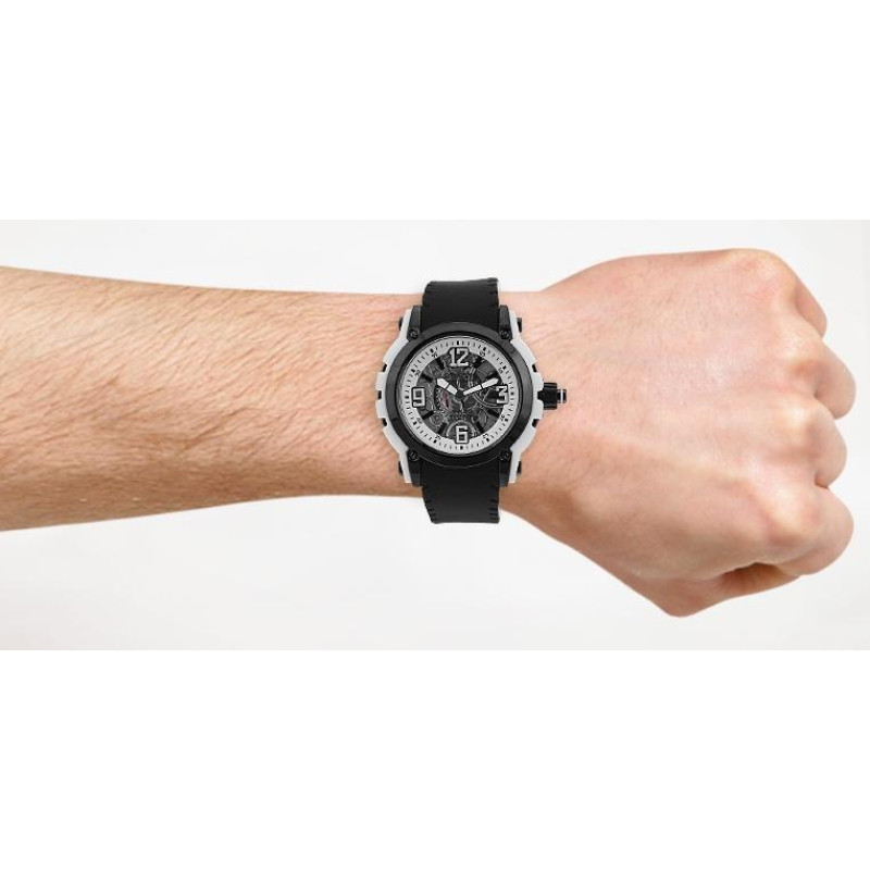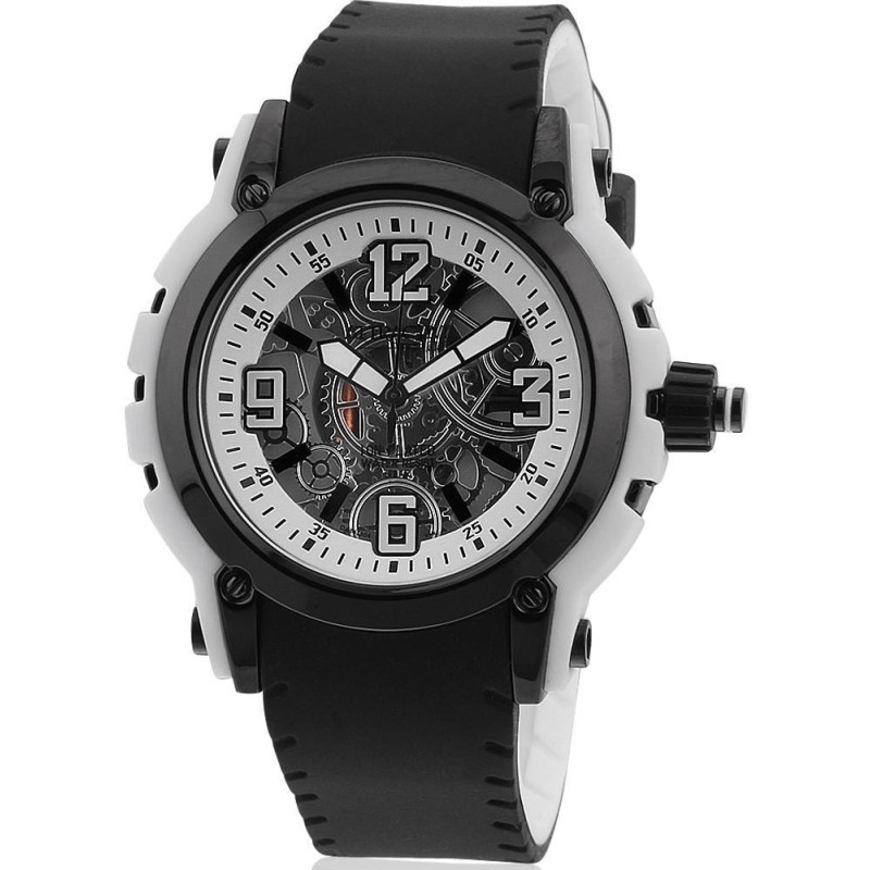 Люминесцентные стрелки. Чёрно-белый силиконовый ремешок. Корпус частично покрыт чёрным PVD-покрытием..