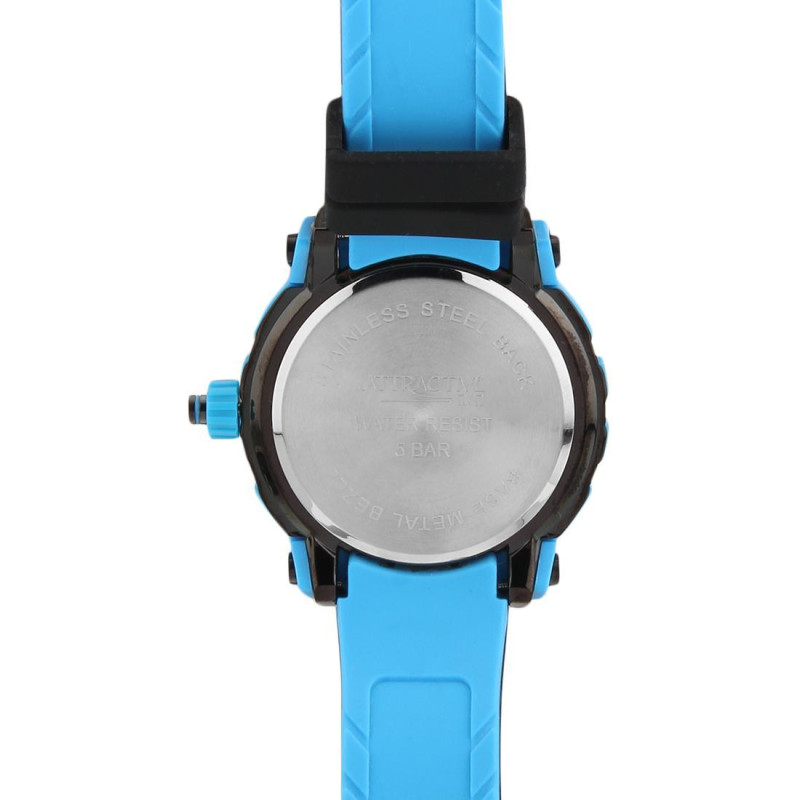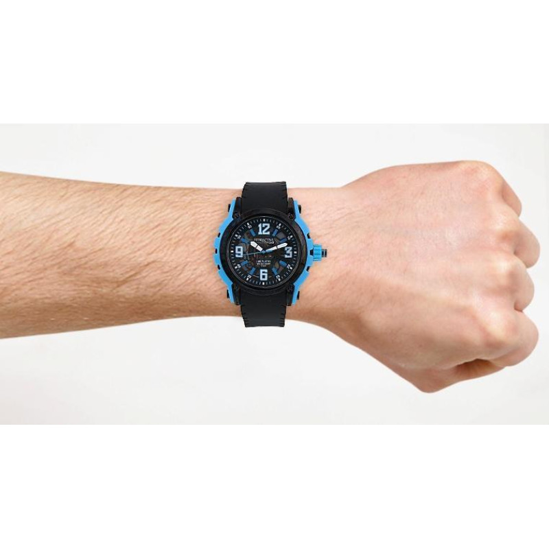 Чёрно-голубой силиконовый ремешок. Корпус частично покрыт чёрным PVD-покрытием. Высота корпуса с учё..