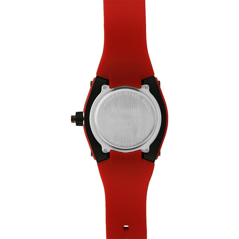 Корпус покрыт чёрным PVD-покрытием. Люминесцентные стрелки. Красный ремешок. Цвет циферблата - чёрны..