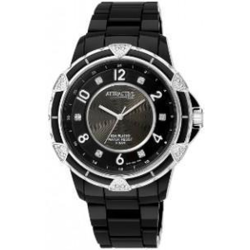 Корпус серебристого цвета. Безель и циферблат украшены фианитами. Чёрный пластиковый ремешок. Цвет ц..