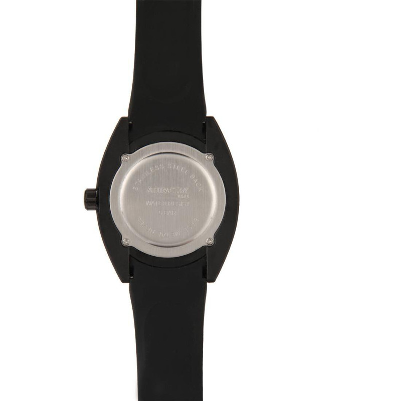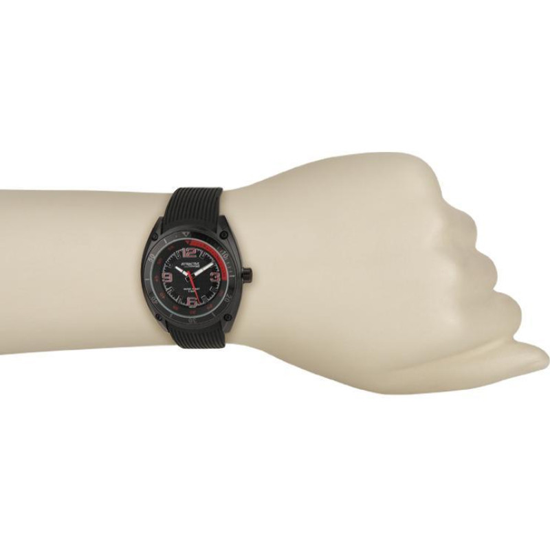 Чёрный силиконовый ремешок. Корпус чёрного цвета. Циферблат — чёрного цвета. Вид циферблата — арабск..