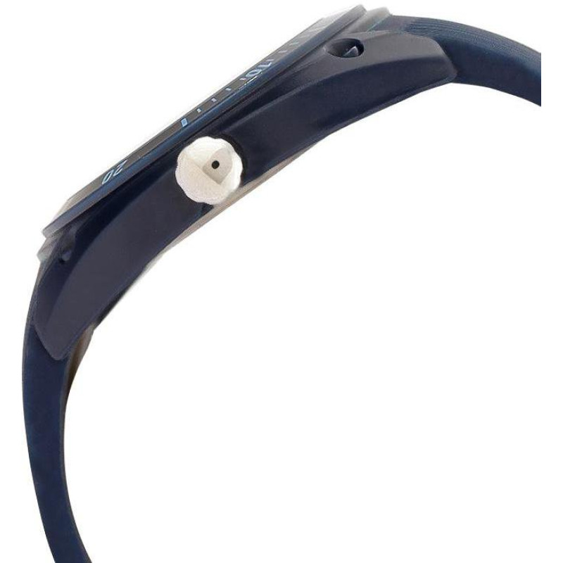 Модель имеет водонепроницаемость 50 м. Корпус выполнен из материала – комбинированный (сталь/пластик). Прочное минеральное стекло надежно защищает циферблат от ударов и других повреждений. Удобный силиконовый ремешок позволяет часам комфортно сидеть на запястье. Из дополнительных функций имеются: секунды.