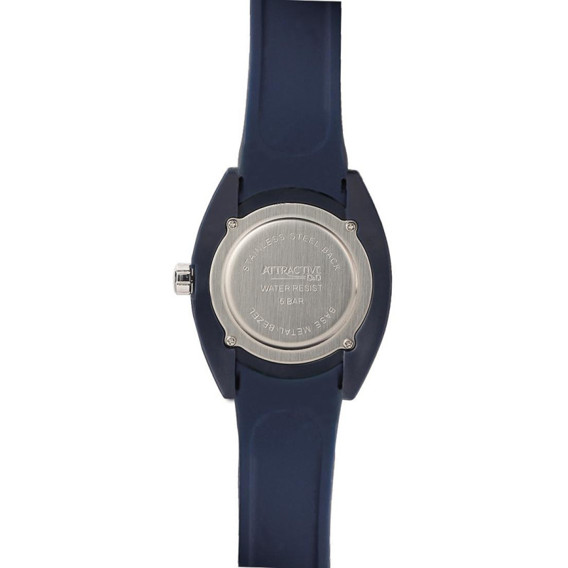 Синий силиконовый ремешок. Корпус синего цвета. Циферблат — синего цвета. Вид циферблата — арабские ..