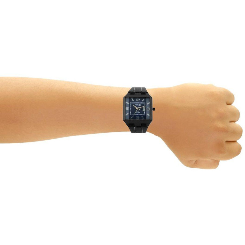 Чёрный кожаный ремешок. Корпус покрыт чёрным PVD-покрытием. Циферблат синего цвета. Вид циферблата —..