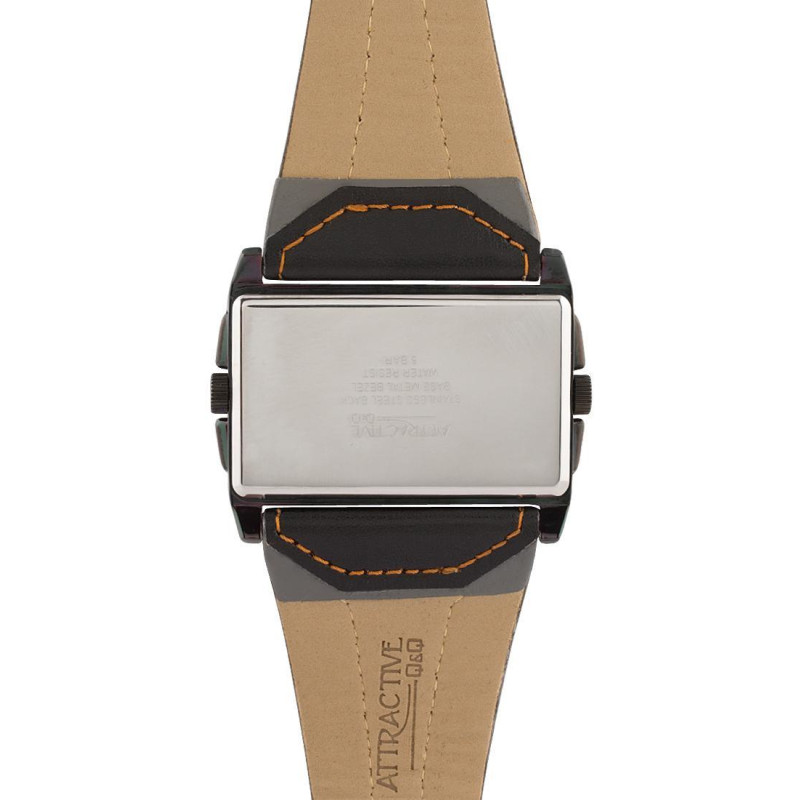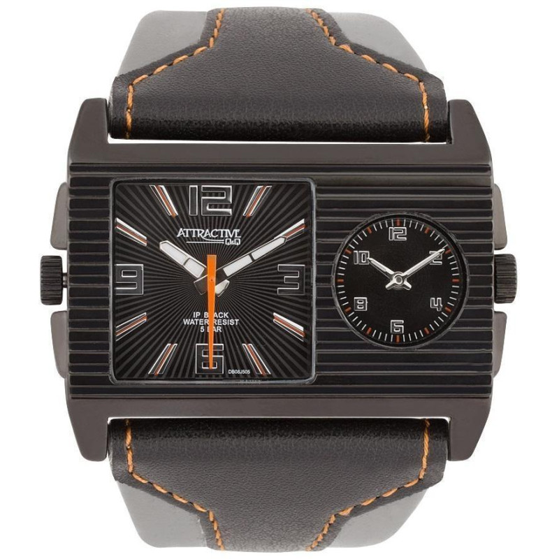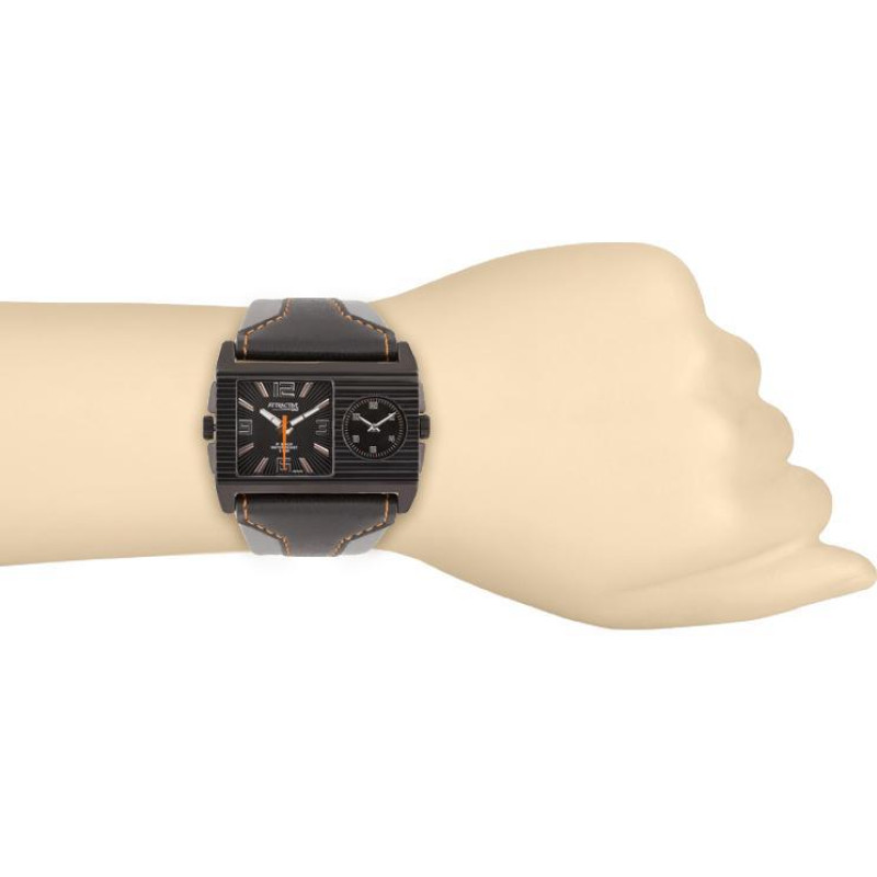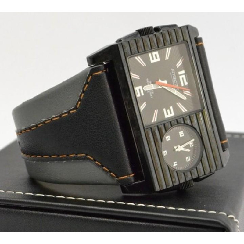 Чёрно-серый кожаный ремешок. Корпус покрыт чёрным PVD-покрытием. Два циферблата - круглый и квадратн..