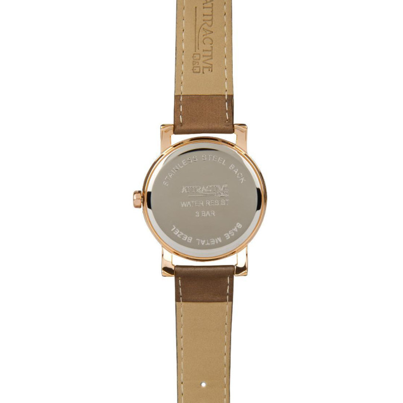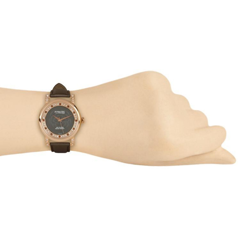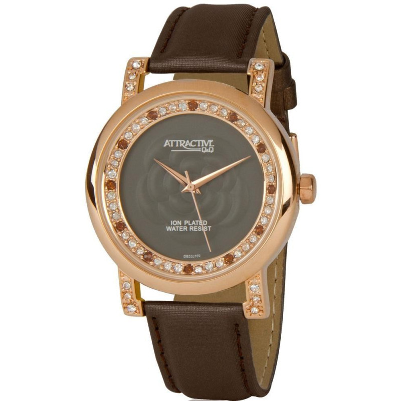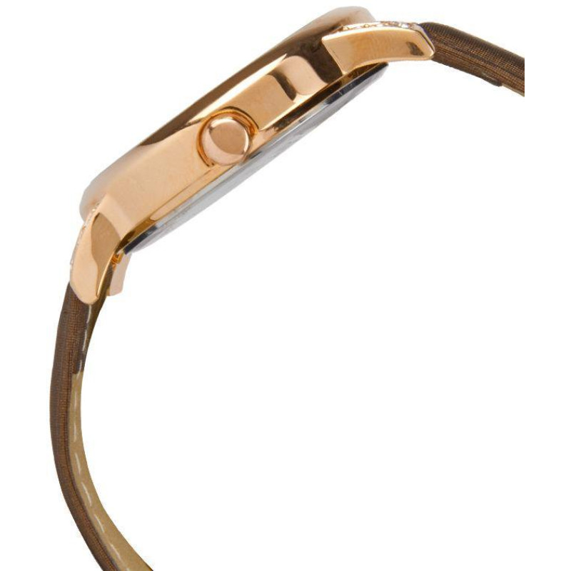 Коричневый сатиновый ремешок. Корпус покрыт PVD-покрытием цвета розового золота и украшен фианитами...