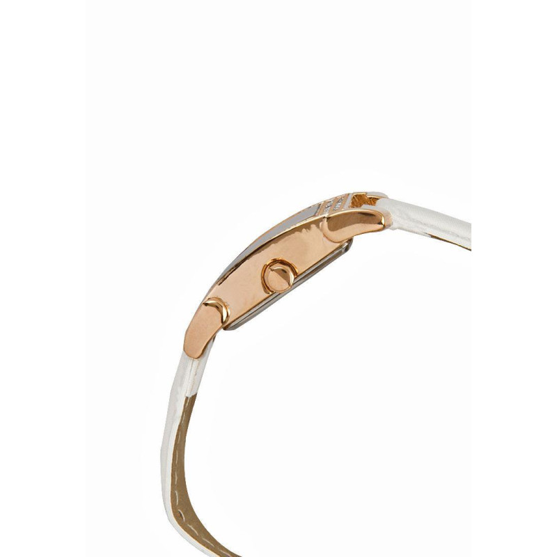 Белый сатиновый ремешок. Корпус покрыт PVD-покрытием цвета розового золота и украшен фианитами. Цвет..