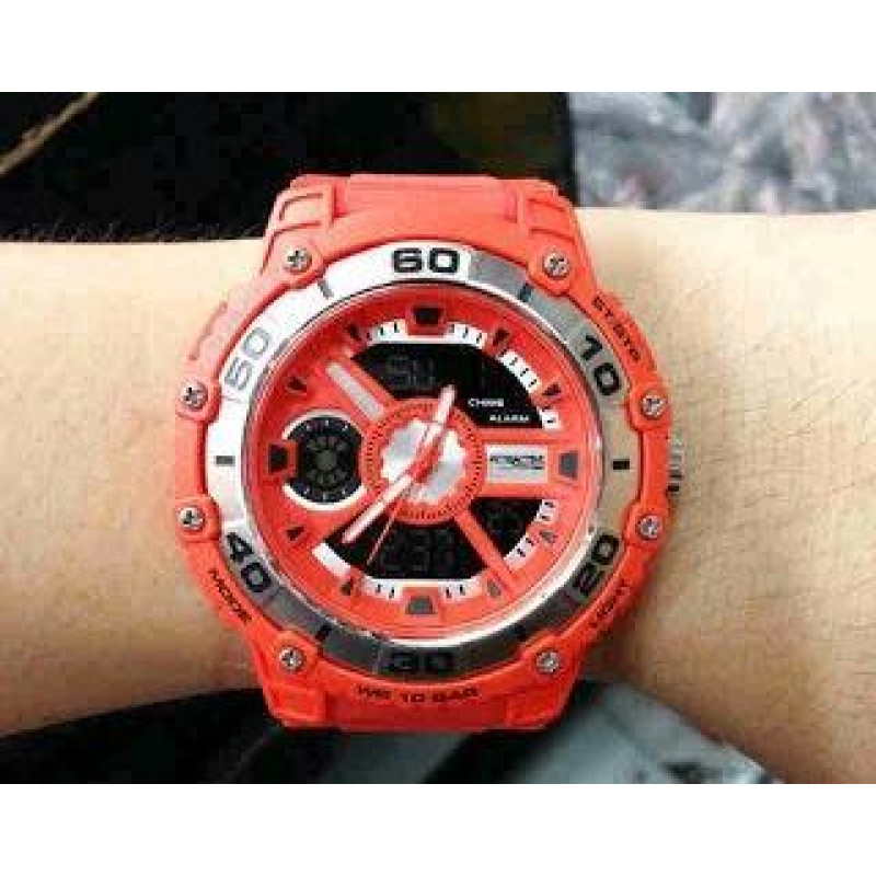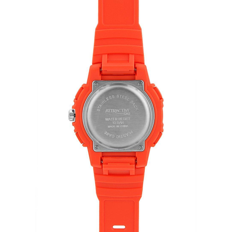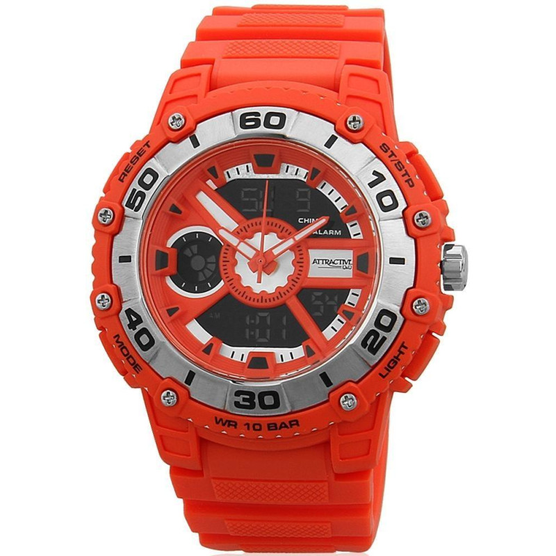 Стрелки с люминисцентным покрытием. Светодиодная подсветка LCD дисплея. Корпус и ремешок оранжевого ..