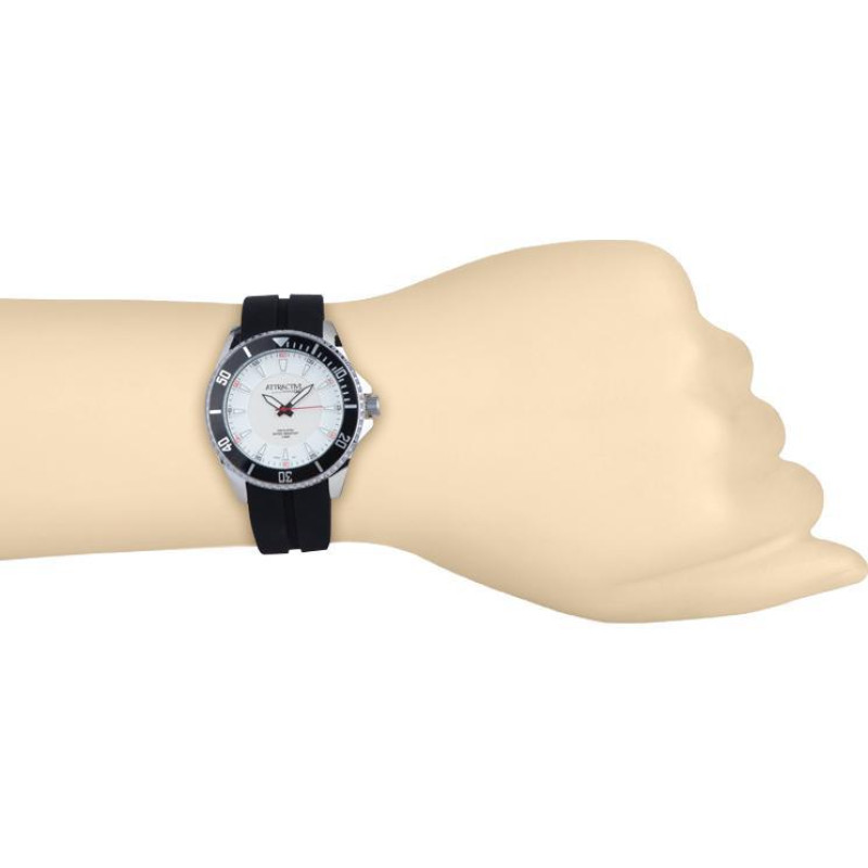 Стрелки с люминесцентным покрытием. Корпус частично покрыт чёрным PVD-покрытием. Чёрный силиконовый ..