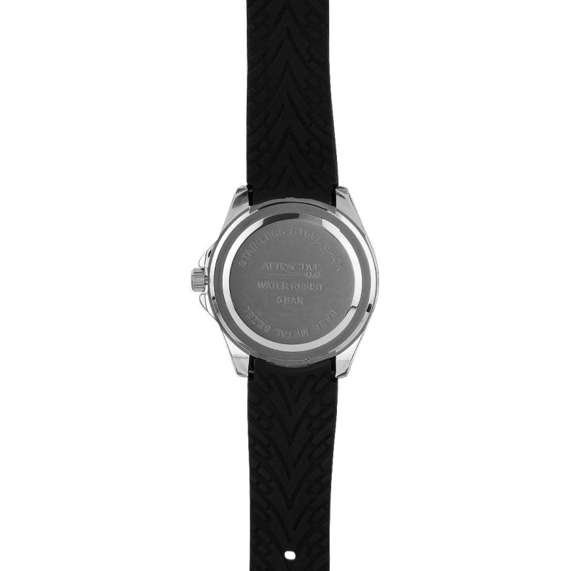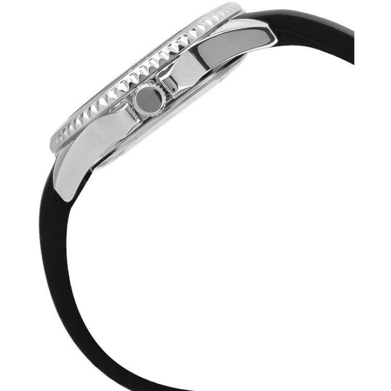 Модель имеет водонепроницаемость 50 м. Корпус выполнен из материала – латунь + PVD. Прочное минеральное стекло надежно защищает циферблат от ударов и других повреждений. Удобный силиконовый ремешок позволяет часам комфортно сидеть на запястье. Из дополнительных функций имеются: минуты, секунды, часы.