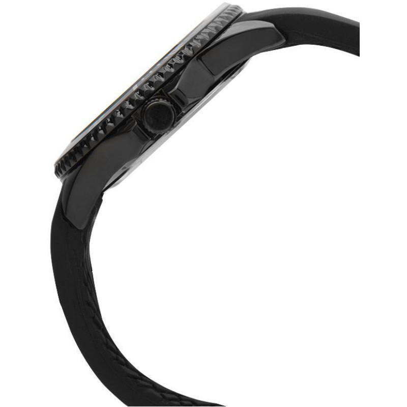 Модель имеет водонепроницаемость 50 м. Корпус выполнен из материала – латунь + PVD. Прочное минеральное стекло надежно защищает циферблат от ударов и других повреждений. Удобный силиконовый ремешок позволяет часам комфортно сидеть на запястье. Из дополнительных функций имеются: минуты, секунды, часы.