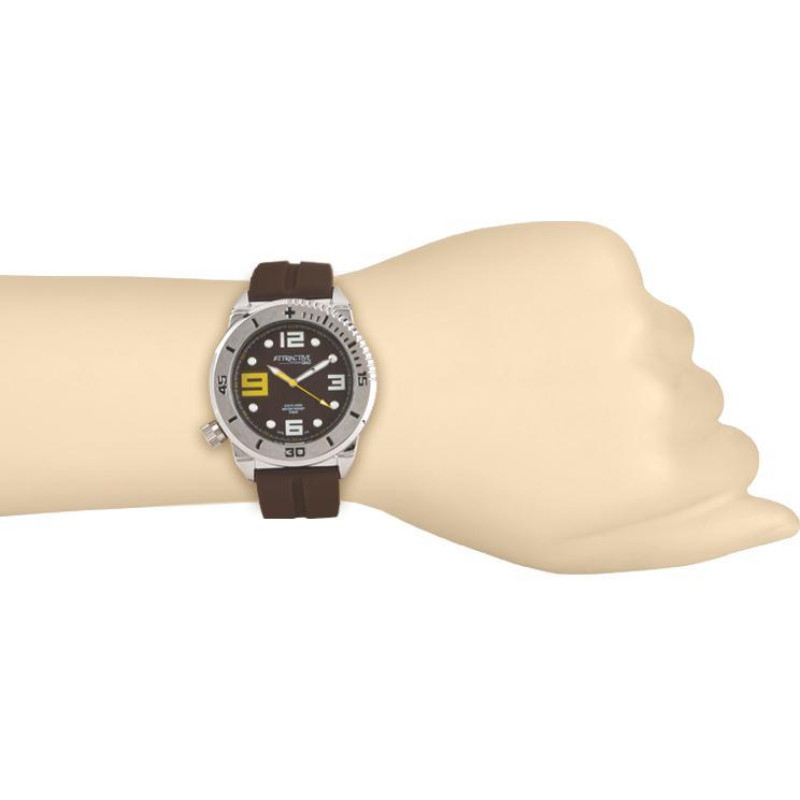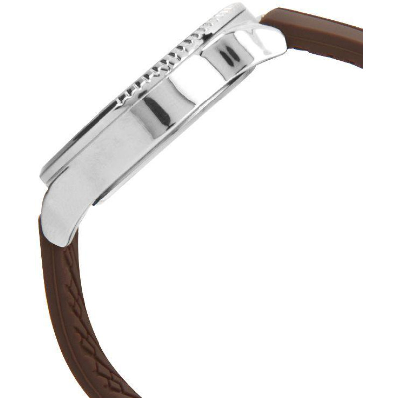Модель имеет водонепроницаемость 50 м. Корпус выполнен из материала – латунь. Прочное минеральное стекло надежно защищает циферблат от ударов и других повреждений. Удобный силиконовый ремешок позволяет часам комфортно сидеть на запястье. Из дополнительных функций имеются: секунды.
