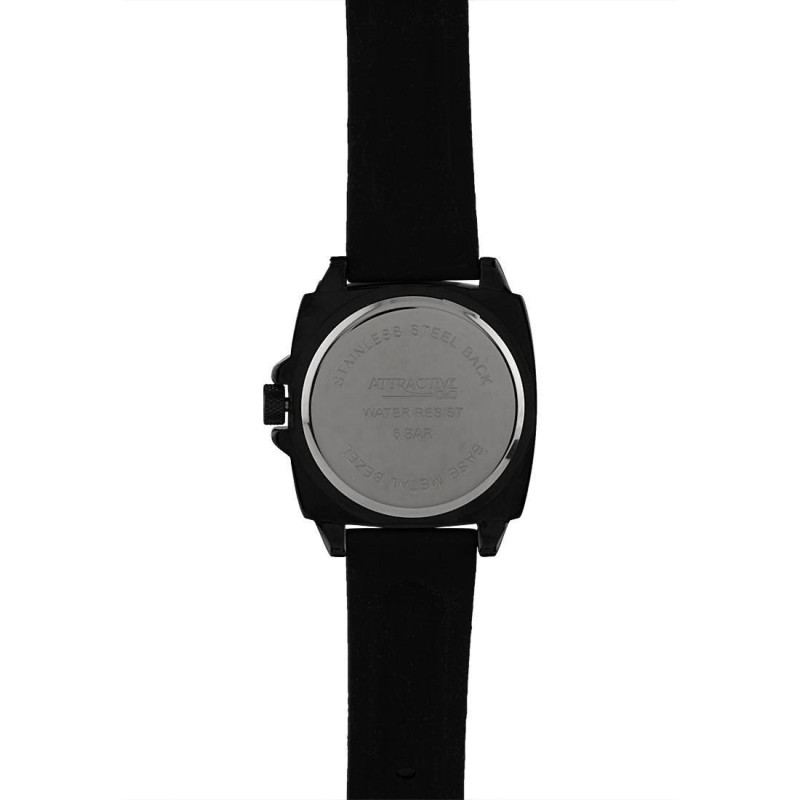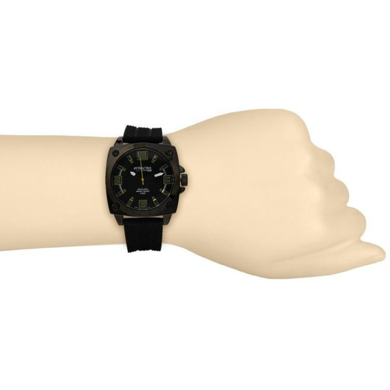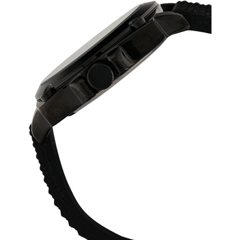 Корпус с PVD покрытием черного цвета. Черный каучуковый ремешок. Циферблат черного цвета с цифрами ..