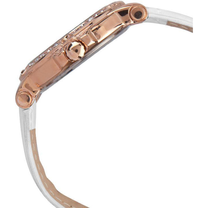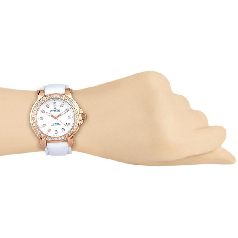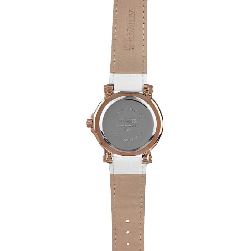 Люминесцентные стрелки. Белый кожаный ремешок. Корпус покрыт PVD-покрытием цвета розового золота и у..