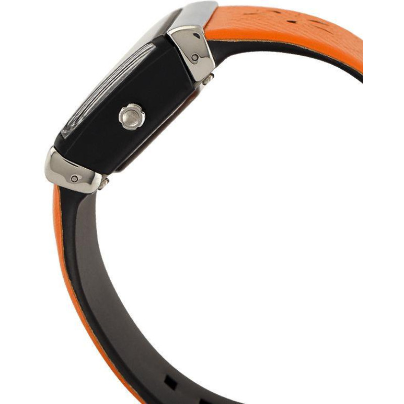 Корпус из латуни и пластика, чёрного цвета. Ремешок кожаный, чёрно-оранжевого цвета. Циферблат — чёр..