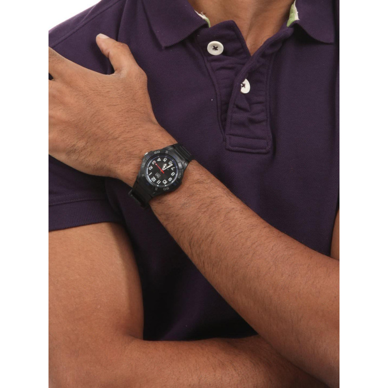 Корпус из латуни и пластика, чёрного цвета. Ремешок каучук, чёрного цвета. Циферблат — чёрного и сер..
