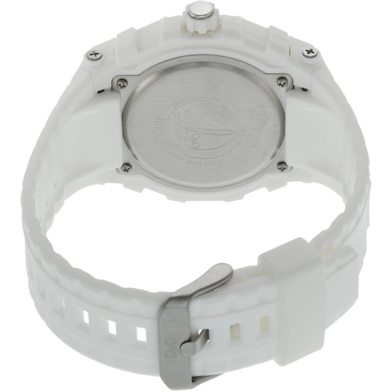 Корпус из латуни и пластика, белого цвета. Ремешок каучук, белого цвета. Циферблат — чёрного цвета. ..