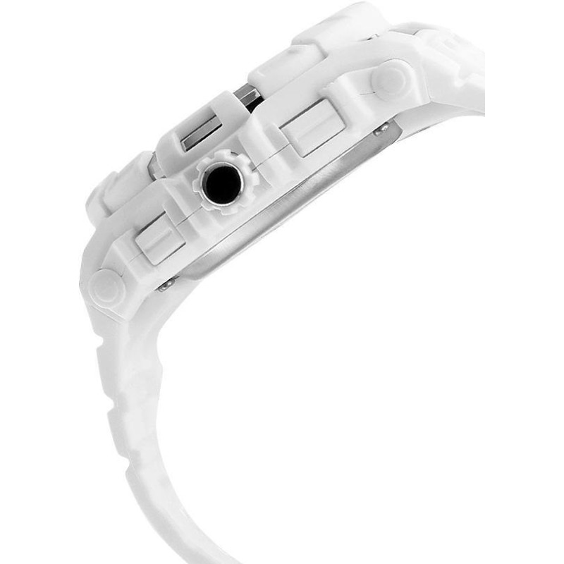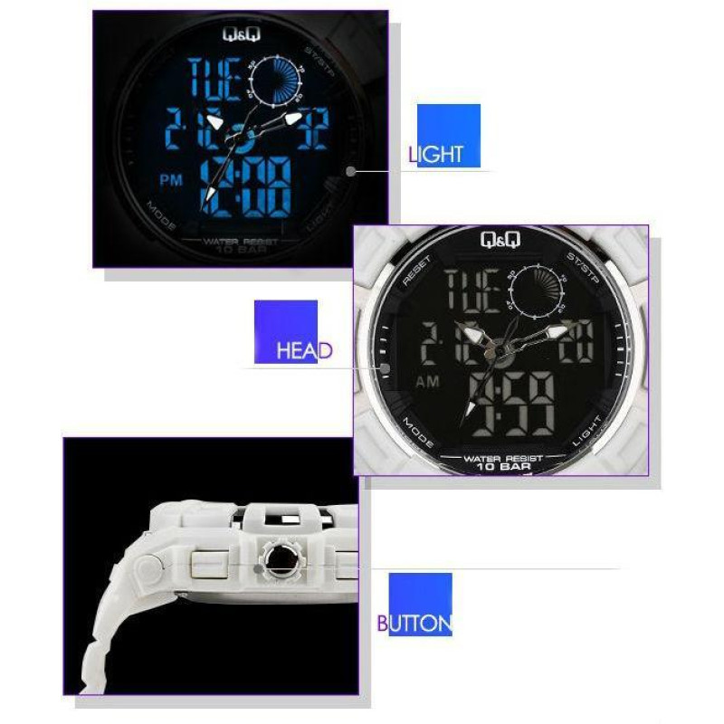 Модель имеет водонепроницаемость 100 м. Корпус выполнен из материала – пластик. Прочное минеральное стекло надежно защищает циферблат от ударов и других повреждений. Удобный полимер ремешок позволяет часам комфортно сидеть на запястье. Из дополнительных функций имеются: 12 и 24-часовой формат времени, будильник, дата, день недели, секундомер, секунды.