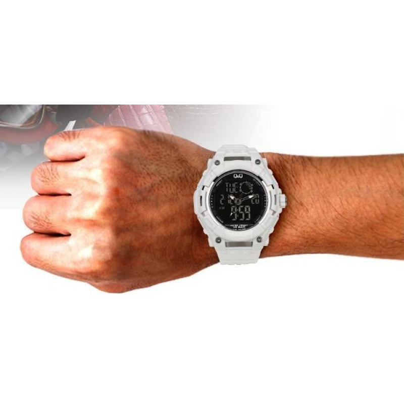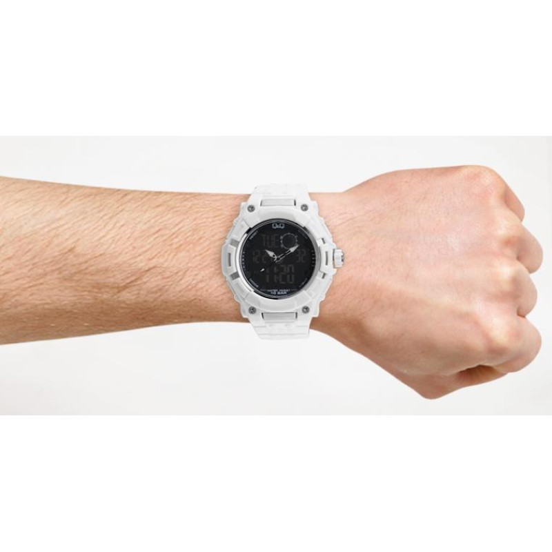 Спортивная мужская модель Q&Q GW80J002Y благородного белого цвета. Ощутимые габариты подчеркнут силь..
