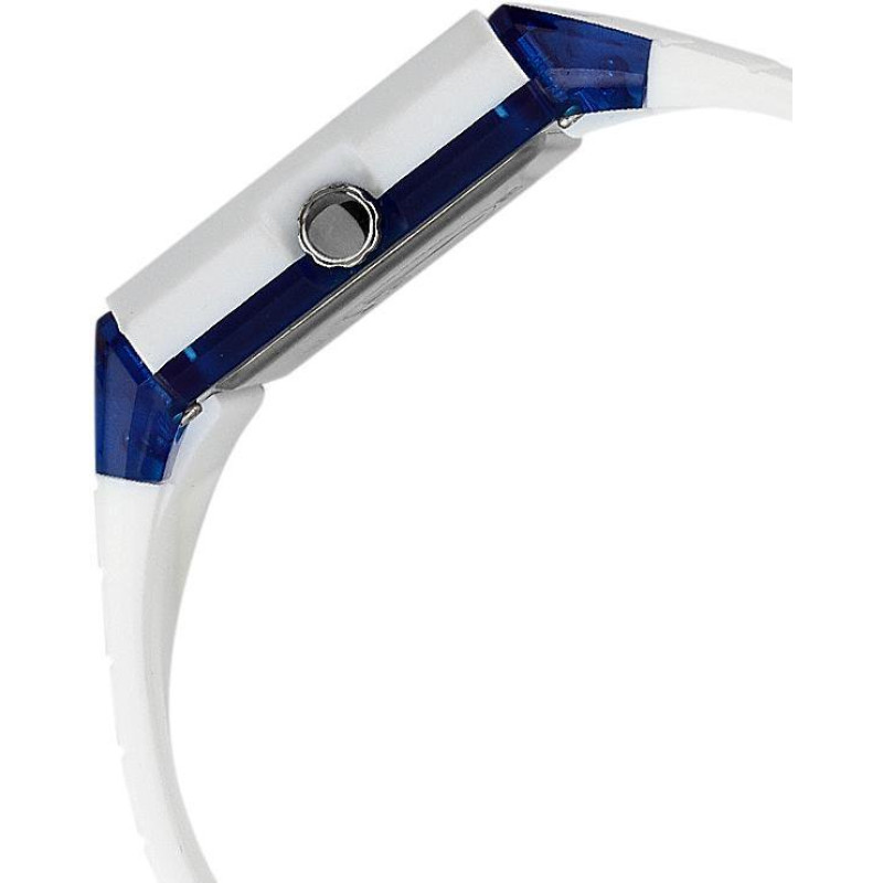 Корпус из латуни и полимера, белого и синего цвета. Ремешок пластик, белого цвета. Циферблат — белог..
