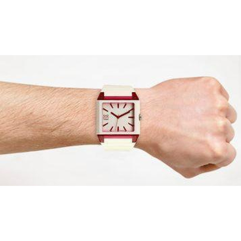 Корпус из нержавеющей стали и пластика, покрыт PVD — покрытием, белого цвета. Ремешок пластик, белог..