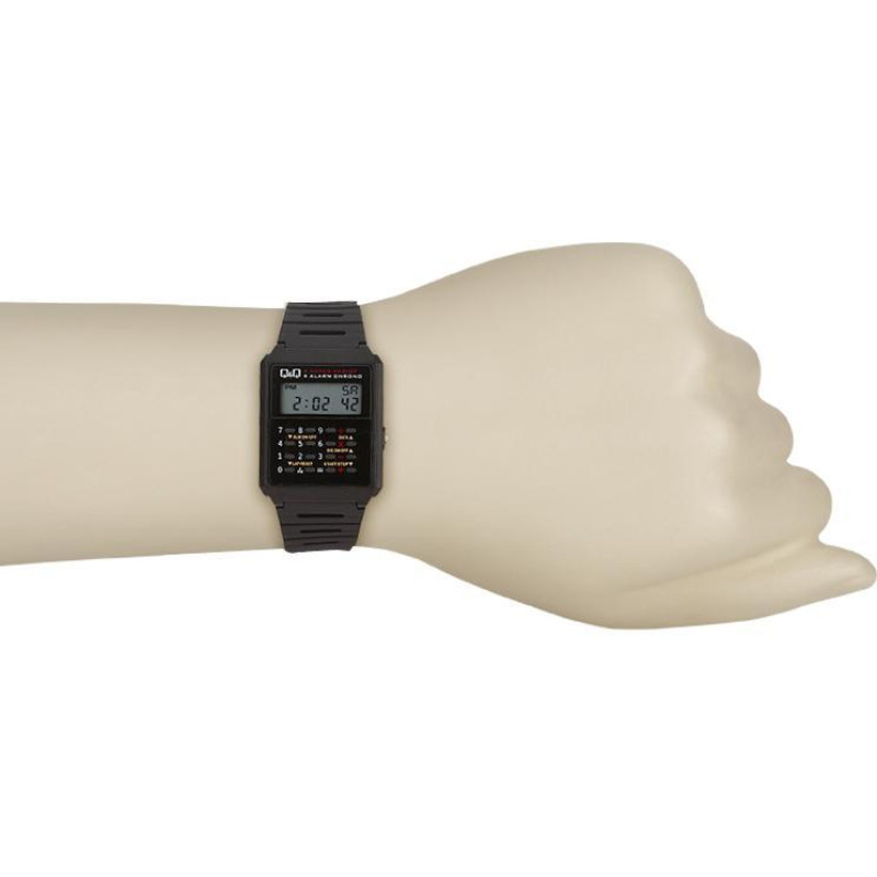 Модель имеет водонепроницаемость 30 м. Корпус выполнен из материала – пластик. Прочное минеральное стекло надежно защищает циферблат от ударов и других повреждений. Удобный полимер ремешок позволяет часам комфортно сидеть на запястье. Из дополнительных функций имеются: будильник, дата, день недели, калькулятор, секундомер, секунды, таймер.