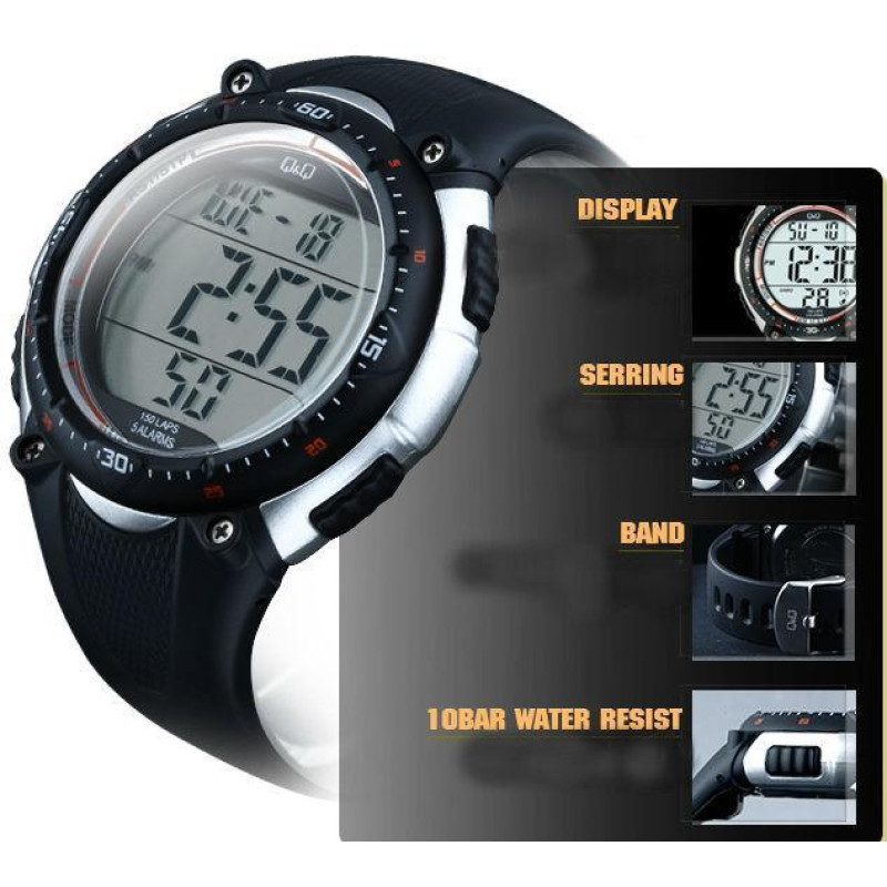 Модель Q&Q M010J002Y отлично подойдет под спортивный и повседневный стиль одежды. Благодаря обширному функционалу, эти часы станут неотъемлемой частью мужчины во время занятий спортом.