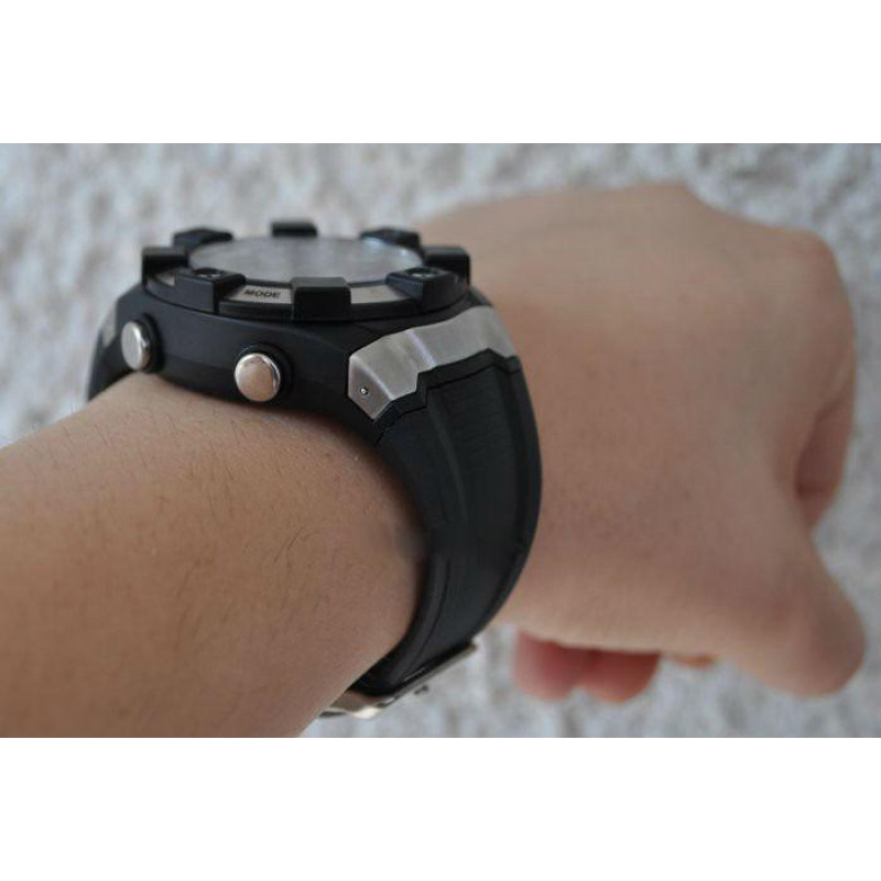 Корпус комбинированый из стали и пластика, чёрного и серого цвета. Ремешок чёрного цвета. Циферблат ..