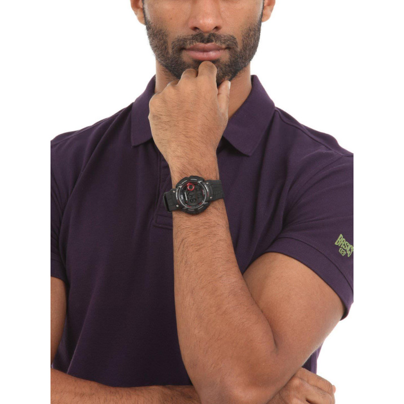 Модель имеет водонепроницаемость 100 м. Корпус выполнен из материала – комбинированный (сталь/пластик). Прочное минеральное стекло надежно защищает циферблат от ударов и других повреждений. Удобный полимер ремешок позволяет часам комфортно сидеть на запястье. Из дополнительных функций имеются: будильник, дата, день недели, месяц.