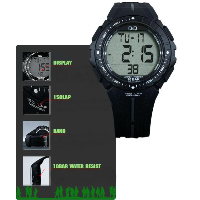 Модель Q&Q M102J001Y отлично подойдет под спортивный и повседневный стиль одежды. Благодаря обширному функционалу, эти часы станут неотъемлемой частью мужчины во время занятий спортом.