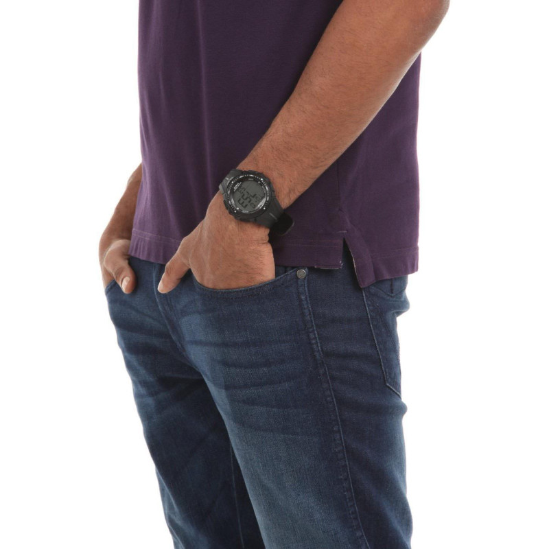Модель имеет водонепроницаемость 100 м. Корпус выполнен из материала – пластик. Прочное пластиковое стекло надежно защищает циферблат от ударов и других повреждений. Удобный полимер ремешок позволяет часам комфортно сидеть на запястье. Из дополнительных функций имеются: будильник, дата, день недели, минуты, секундомер, секунды, часы.