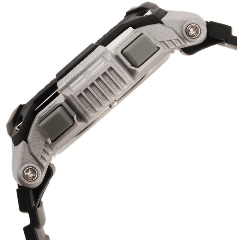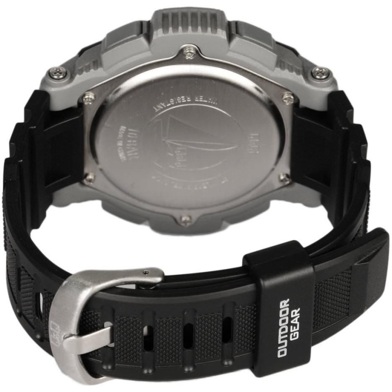 Модель имеет водонепроницаемость 100 м. Корпус выполнен из материала – пластик. Прочное пластиковое стекло надежно защищает циферблат от ударов и других повреждений. Удобный полимер ремешок позволяет часам комфортно сидеть на запястье. Из дополнительных функций имеются: 12 и 24-часовой формат времени, будильник, дата, день недели, минуты, секундомер, секунды, таймер обратного отсчёта, часы.