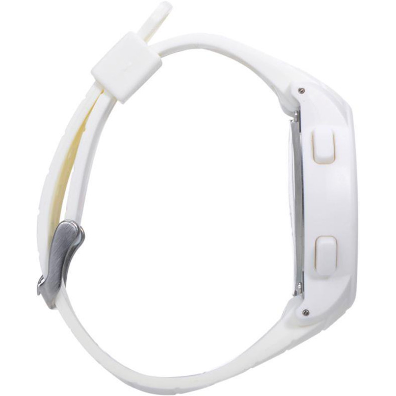 Корпус из пластика, белого цвета. Ремешок белого цвета. Циферблат - электронный, серого цвета. Подсв..