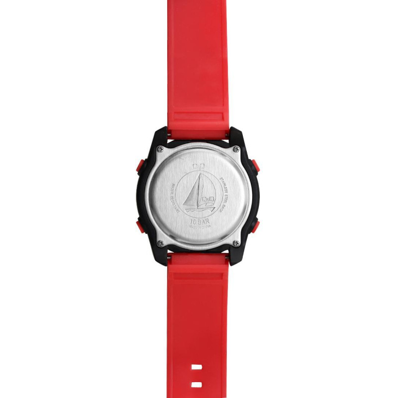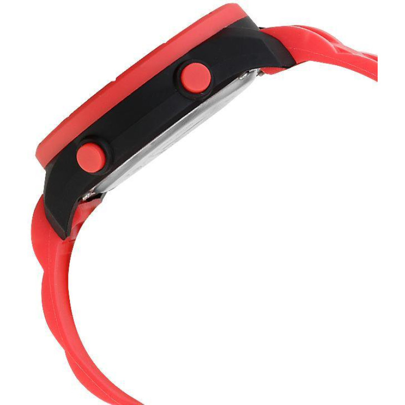 Ремешок красного цвета. Подсветка дисплея электролюминесцентная. Установлен японский механизм Miyota..