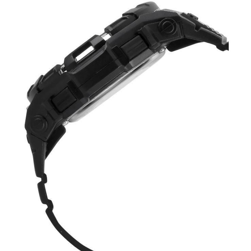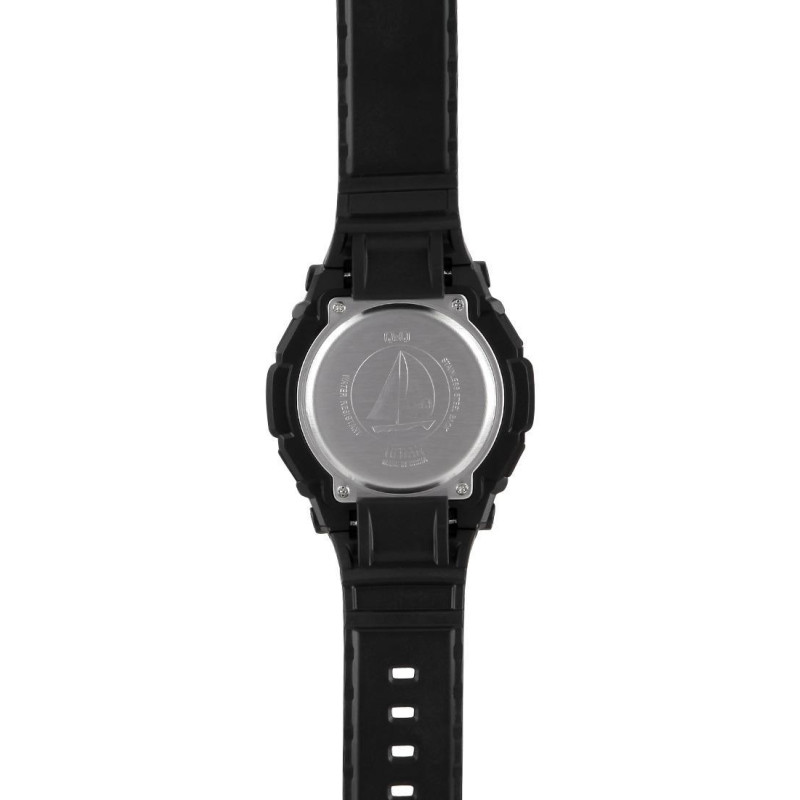 Модель имеет водонепроницаемость 100 м. Корпус выполнен из материала – комбинированный (сталь/пластик). Прочное минеральное стекло надежно защищает циферблат от ударов и других повреждений. Удобный полимер ремешок позволяет часам комфортно сидеть на запястье. Из дополнительных функций имеются: будильник, дата, день недели, месяц, секундомер.