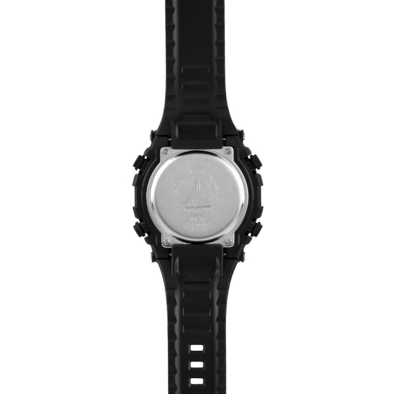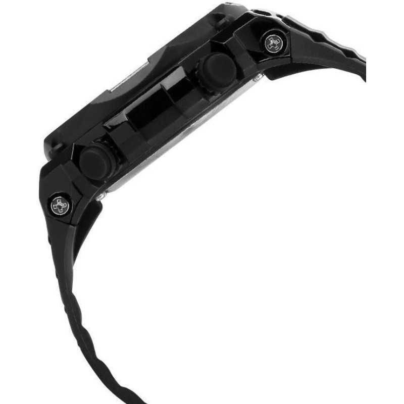 Модель имеет водонепроницаемость 100 м. Корпус выполнен из материала – комбинированный (сталь/пластик). Прочное пластиковое стекло надежно защищает циферблат от ударов и других повреждений. Удобный полимер ремешок позволяет часам комфортно сидеть на запястье. Из дополнительных функций имеются: будильник, дата, день недели, месяц, секундомер, таймер.