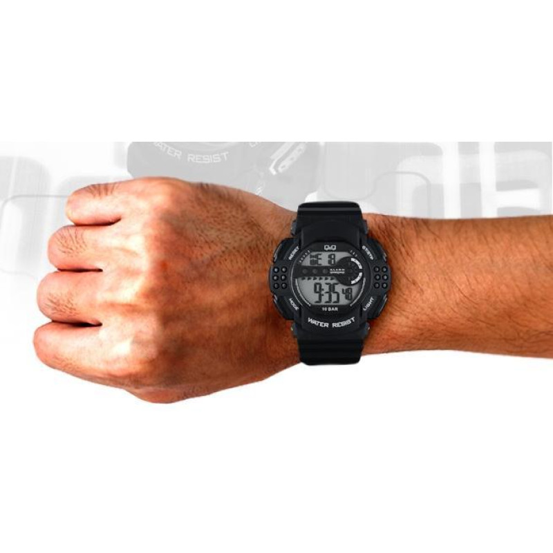 Модель Q&Q M128J003Y отлично подойдет под спортивный и повседневный стиль одежды. Благодаря обширному функционалу, эти часы станут неотъемлемой частью мужчины во время занятий спортом.