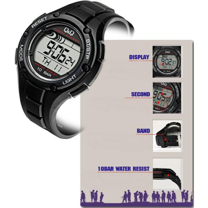 Модель Q&Q M131J001Y хороший вариант спортивного облика и функциональных способностей. В этих электр..