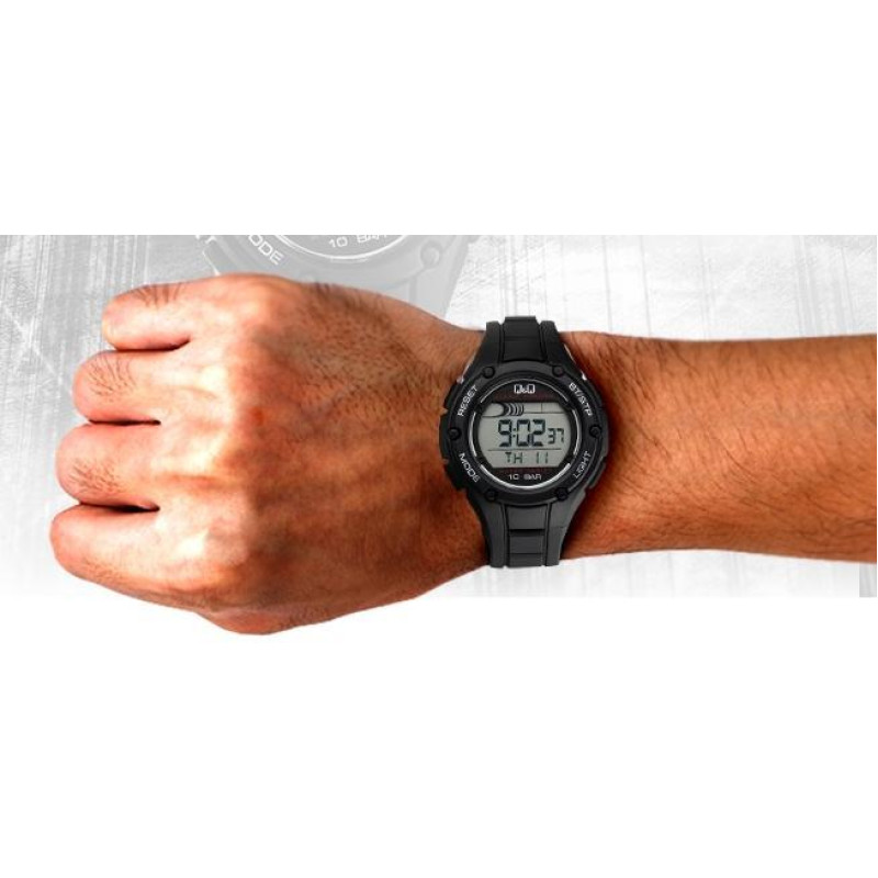 Модель Q&Q M129J001Y отлично подойдет под спортивный и повседневный стиль одежды. Благодаря обширному функционалу, эти часы станут неотъемлемой частью мужчины во время занятий спортом.