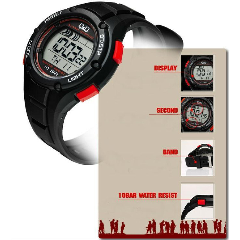 Модель Q&Q M129J004Y отлично подойдет под спортивный и повседневный стиль одежды. Благодаря обширному функционалу, эти часы станут неотъемлемой частью мужчины во время занятий спортом.