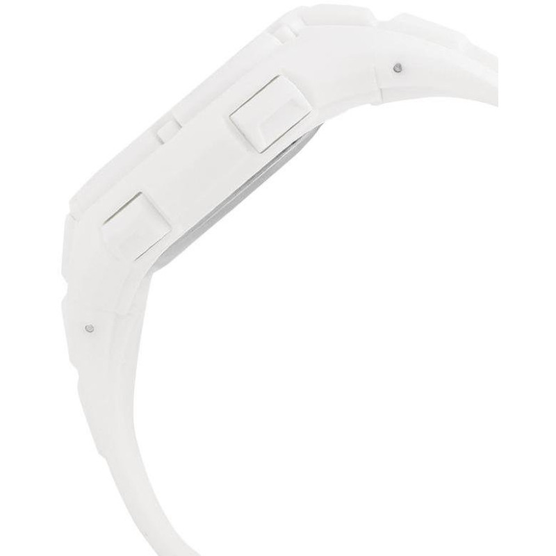 Белый полимерный ремешок. Корпус белого цвета. Циферблат — серый, с электролюминесцентной подсветкой..