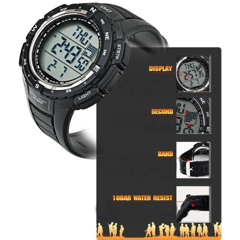 Модель Q&Q M131J002Y отлично подойдет под спортивный и повседневный стиль одежды. Благодаря обширному функционалу, эти часы станут неотъемлемой частью мужчины во время занятий спортом.