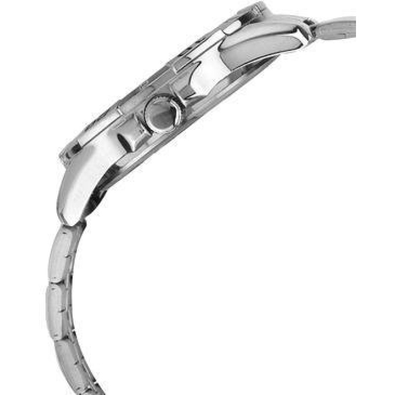 Модель имеет водонепроницаемость 50 м. Корпус выполнен из материала – латунь. Прочное минеральное стекло надежно защищает циферблат от ударов и других повреждений. Удобный стальной браслет позволяет часам комфортно сидеть на запястье. Из дополнительных функций имеются: секунды.