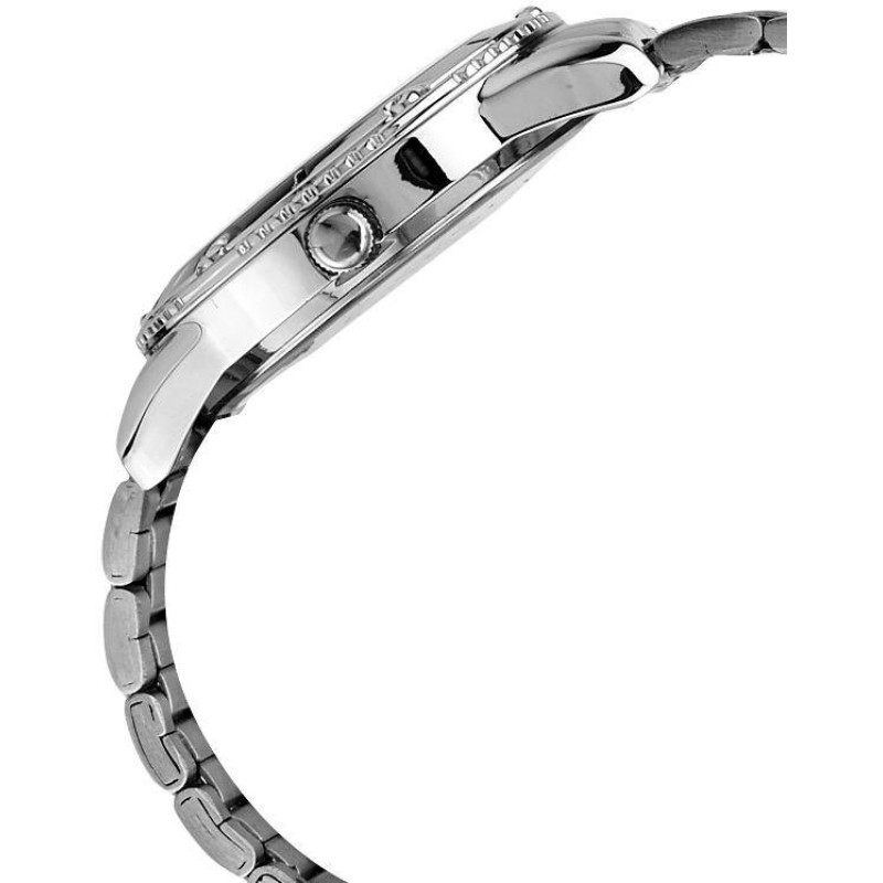 Браслет из нержавеющей стали. Циферблат — серебристого и чёрного цвета. Вид циферблата — арабские ци..
