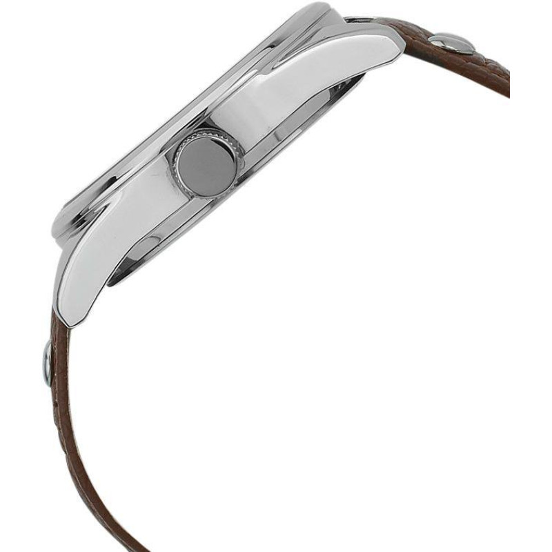 Корпус из латуни, серебристого цвета. Ремешок кожаный, коричневого цвета. Циферблат — коричневого цв..