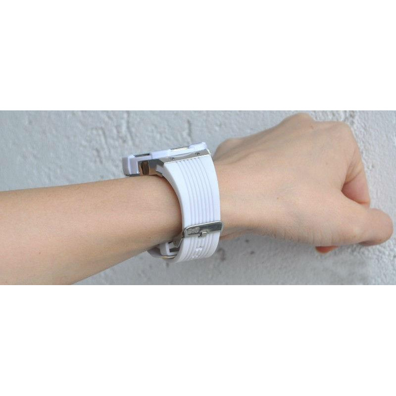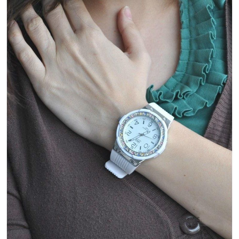 Белый полимерный ремешок. Корпус частично покрыт белым PVD-покрытием. Цвет циферблата — белый. Вид ц..
