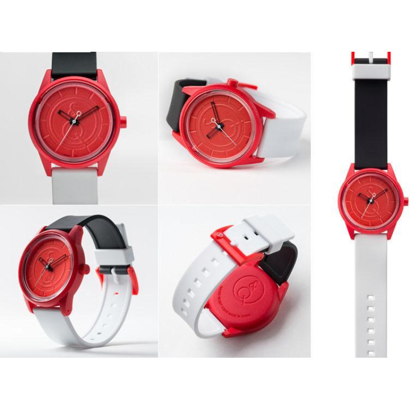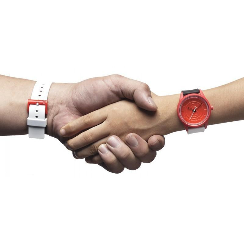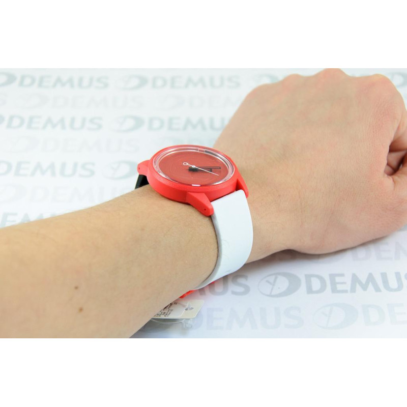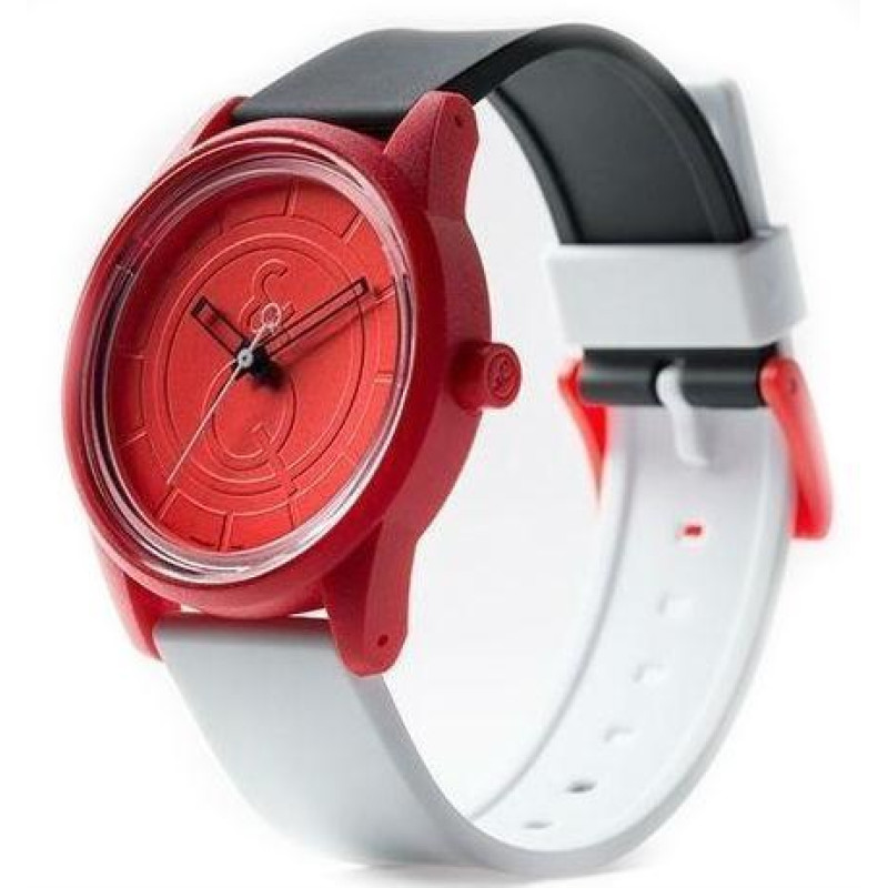 Корпус из пластика, красного цвета. Ремешок полимерный, чёрно-белого цвета. Циферблат — красного цве..
