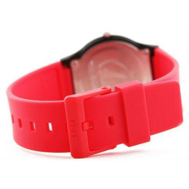 Красный полимерный ремешок. Корпус чёрного цвета. Задняя крышка корпуса из нержавеющей стали. Циферб..