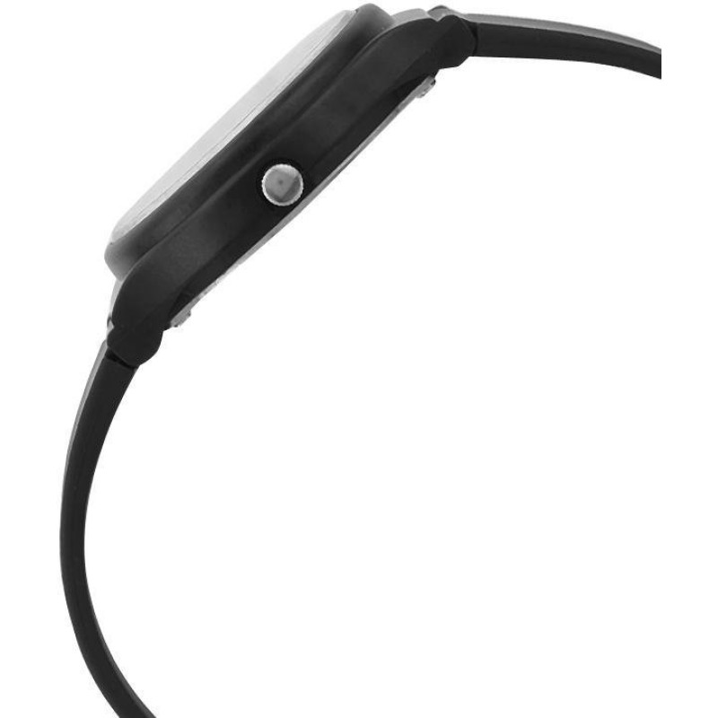Модель имеет водонепроницаемость 100 м. Корпус выполнен из материала – пластик. Прочное минеральное стекло надежно защищает циферблат от ударов и других повреждений. Удобный силиконовый ремешок позволяет часам комфортно сидеть на запястье. Из дополнительных функций имеются: секунды.
